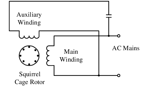 During the teardown, I looked further into the dishwasher’s design, notably the circulation pump. It uses a single-phase AC induction motor, which requires a start capacitor to create the necessary phase shift in the auxiliary winding to initiate rotation.